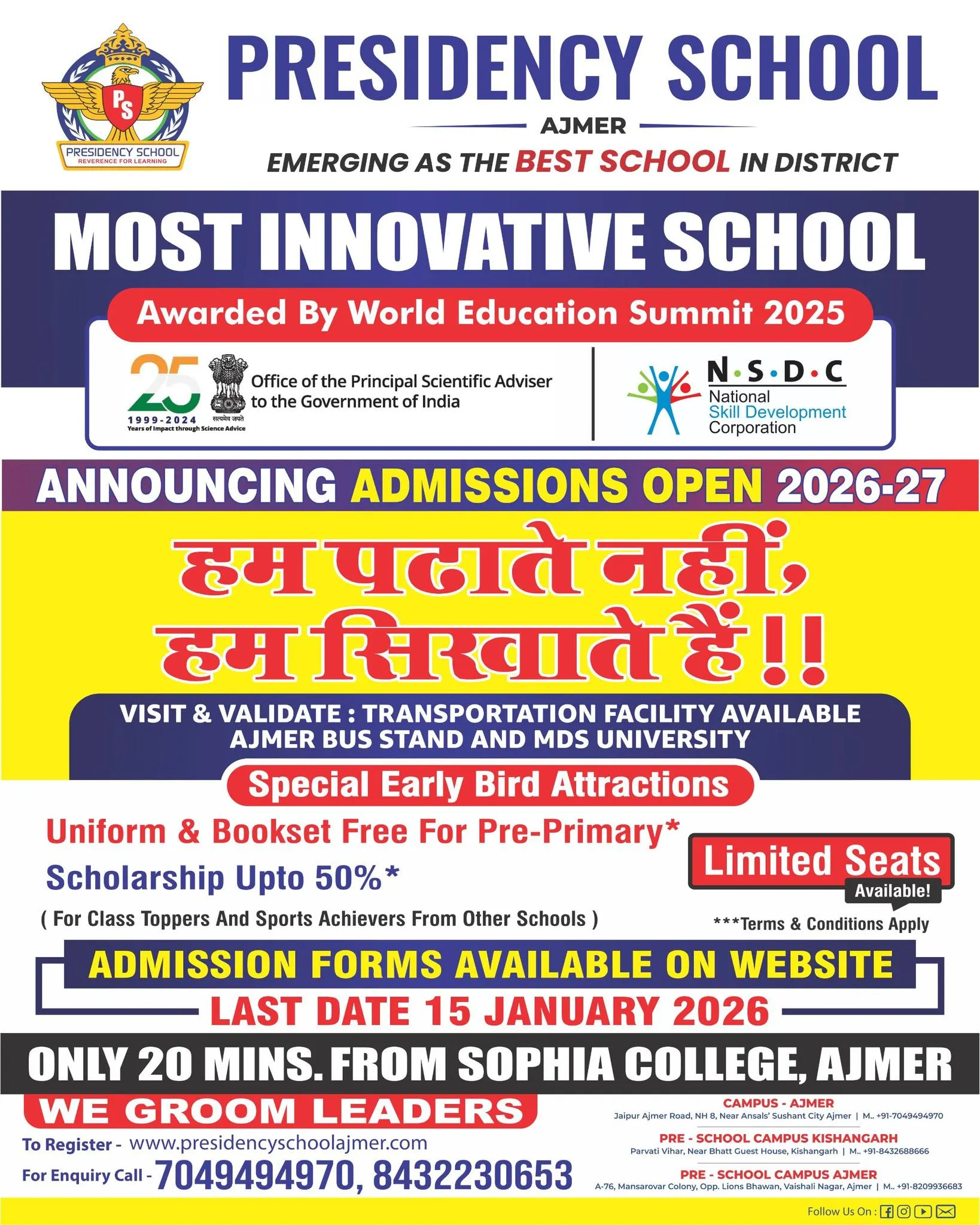 Coming back to Ajmer after along time to attend an important occasion at Presidency School . It have been the most amazing experience as I have been in school in this lovely city Ajmer. I congratulate all the Presidency Family members for such a flawless and encouraging celebration of Independence Day. It was truly an honor to do the flag hoisting and I thank one and all for this prestigious honor. Best Wishes